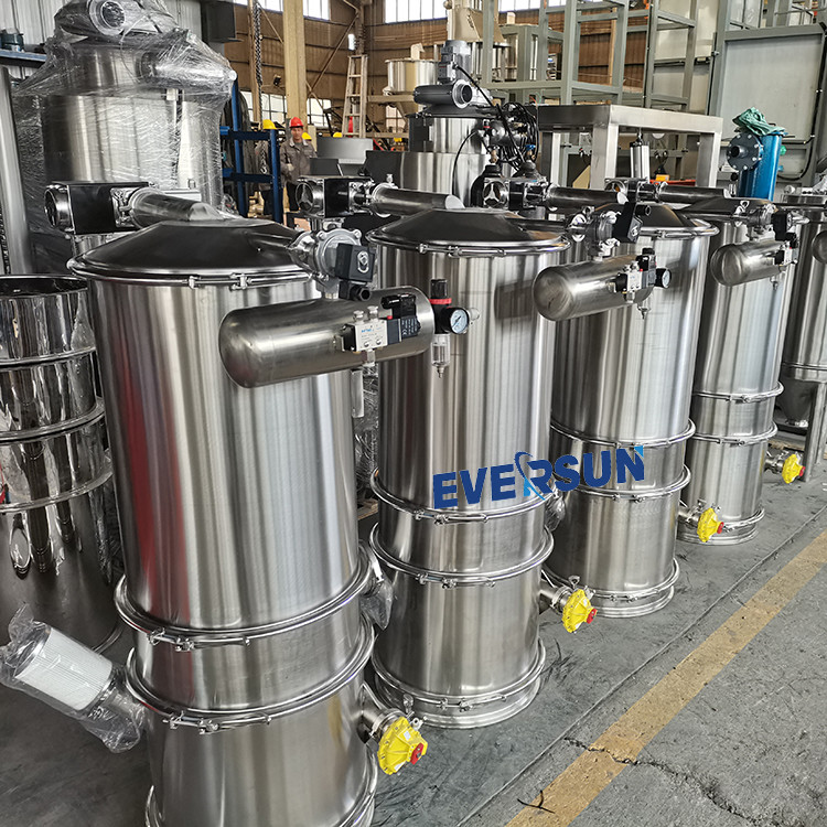 Το σύστημα μεταφοράς κενού Eversun είναι επίσης κατάλληλο για εφαρμογές που απαιτούν απαλό χειρισμό και ακριβή δοσολογία.τα συστήματα μεταφοράς κενού χρησιμοποιούνται για τη μεταφορά ευαίσθητων και εύθραυστων υλικώνΠαρόμοια, στη βιομηχανία πλαστικών, τα συστήματα μεταφοράς κενού χρησιμοποιούνται για τη μεταφορά πλαστικών σφαιρίων και σκόνης.,χωρίς να προκαλούν καμία υποβάθμιση ή μόλυνση.