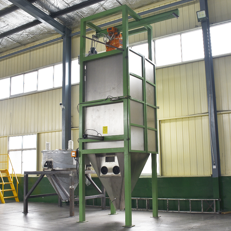 Ο σταθμός εκφόρτωσης κλειστού τόνου-σακιδίου είναι ένας εξειδικευμένος και φιλικός προς το περιβάλλον εξοπλισμός σχεδιασμένος για την εκφόρτωση υλικών τόνου-σακιδίου. Ο βασικός του σχεδιασμός έγκειται στην πλήρως κλειστή δομή, η οποία μπορεί να αποτρέψει αποτελεσματικά τη διαφυγή σκόνης και να διασφαλίσει την καθαριότητα και την ασφάλεια του περιβάλλοντος εργασίας.